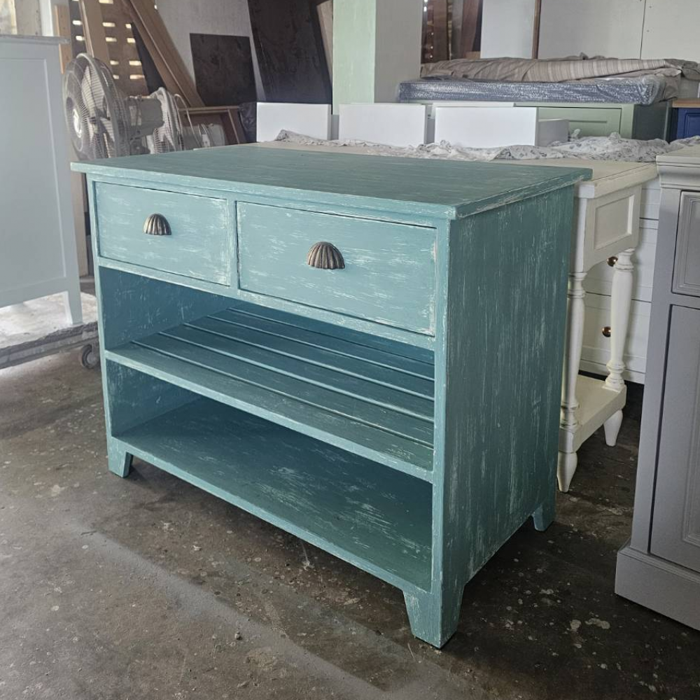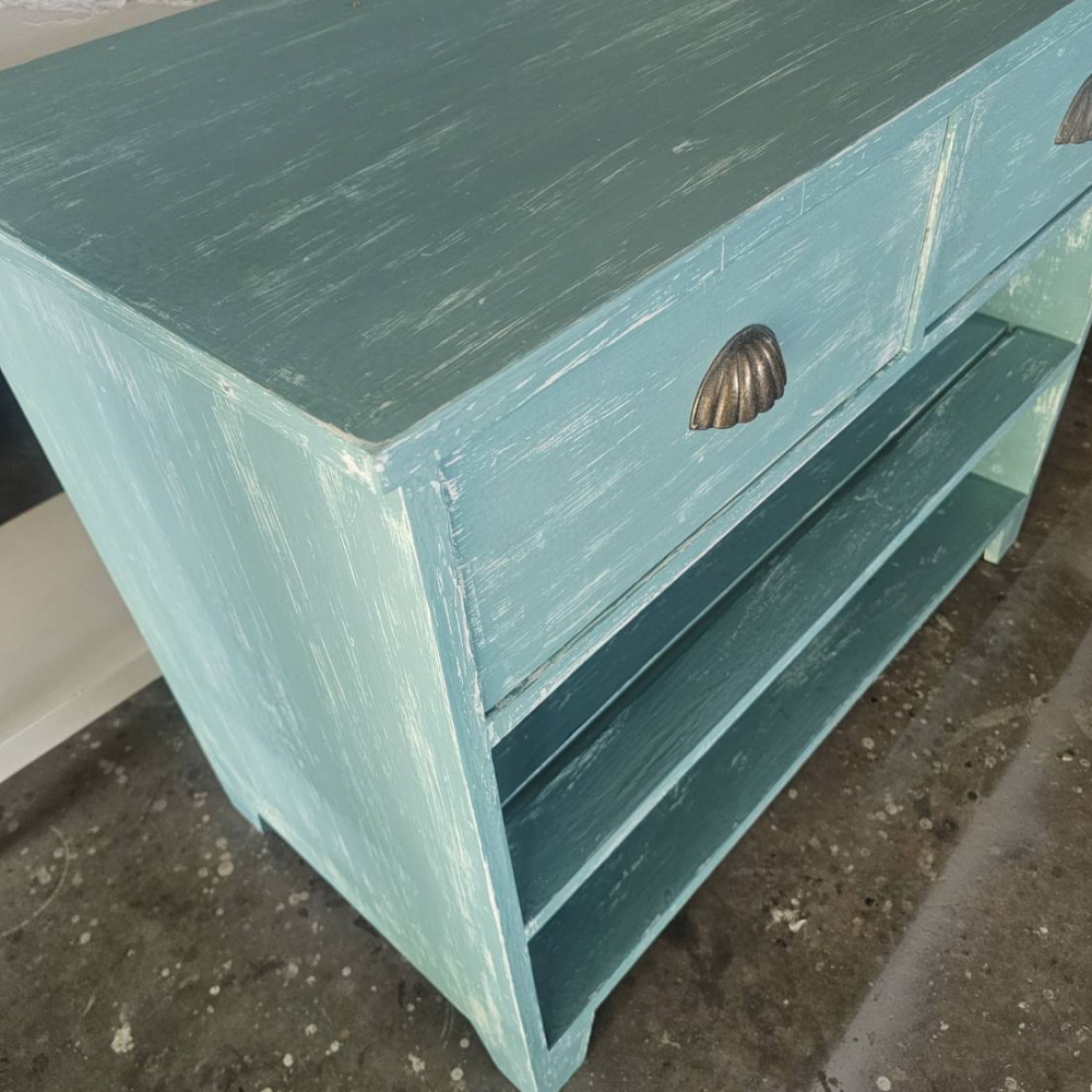+ ตู้เอนกประสงค์ ลงพื้นสีขาวทับด้วยสีฟ้าอมเขียวขัดถลอก
