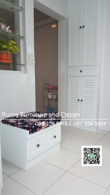 ตู้รองเท้าทำจากไม้สน ขนาด 2.00 x 0.38 x 1.40 เมตรบานประตูทึบเลื่อนซ้ายขวา ด้านในมี 5 ชั้น 6 ช่องสำหรับเก็บรองเท้า ด้านหลังตู้เจาะรูระบายอากาศพร้อมติดตาข่ายกันแมลงด้านหลังตู้ มือจับเป็นลูกควักเจาะคว้านตรงขอบบานประตู