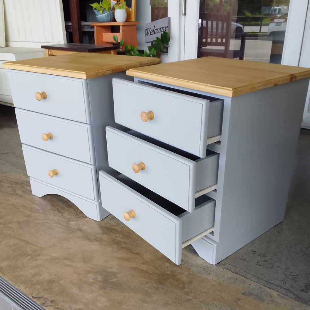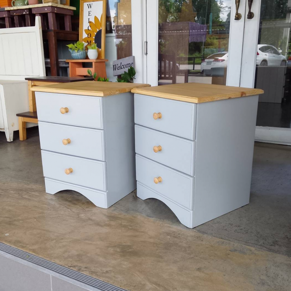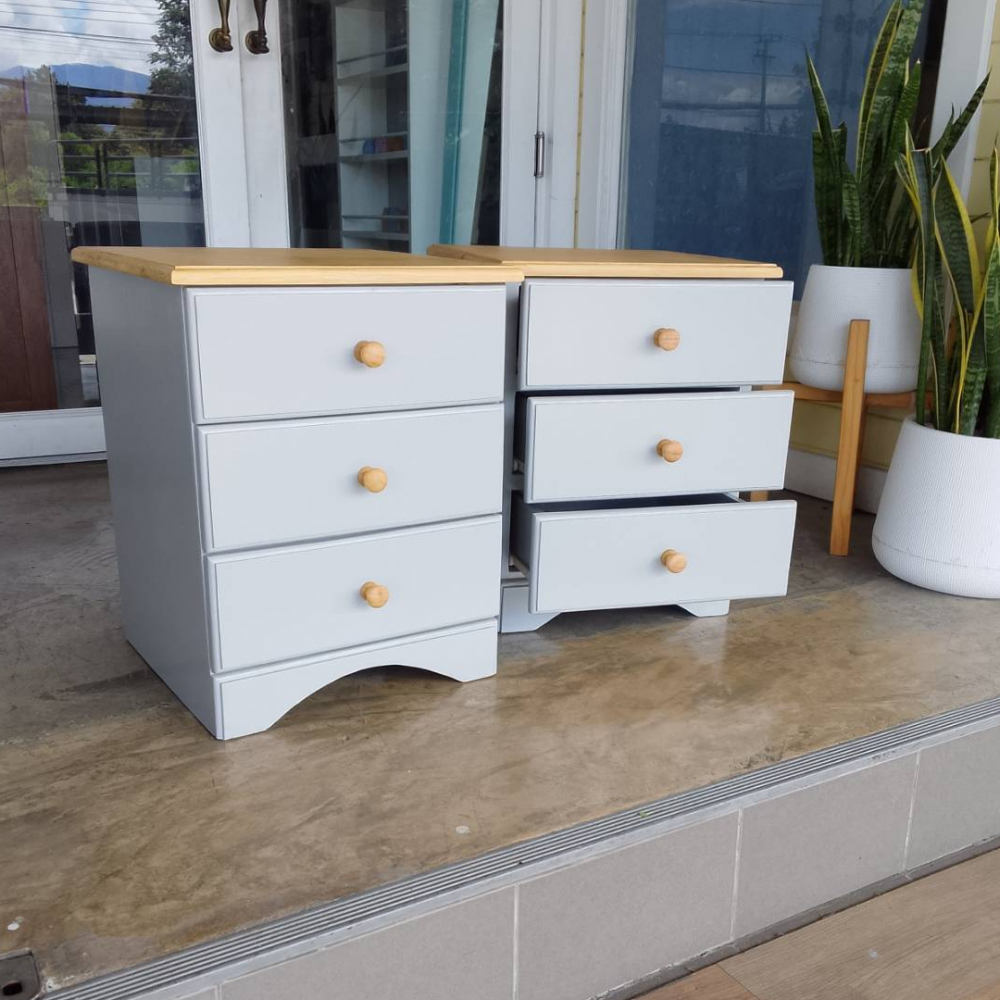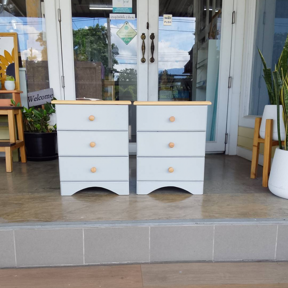 + ตู้หัวเตียง ตัวตู้สีเทาอ่อนพ่นอุตสาหกรรม